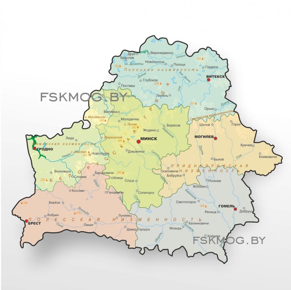 Детальная точность: На карте отражены все ключевые географические объекты с подписями, крупные города и основные формы рельефа.